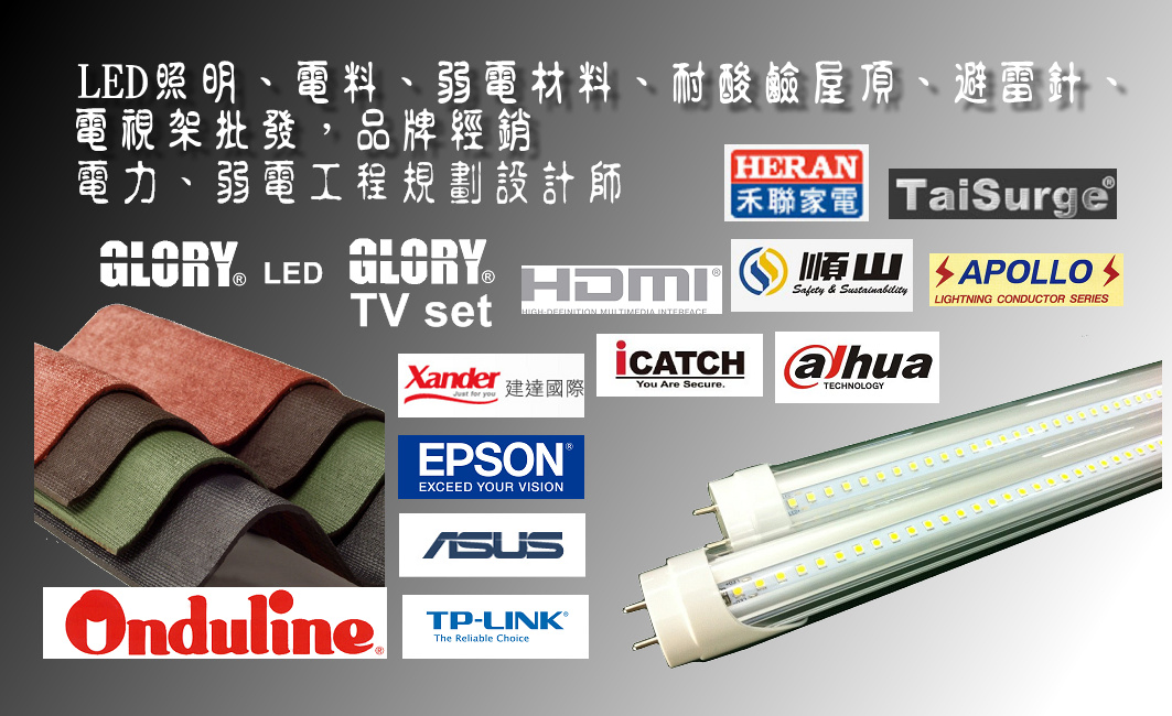 監控器材、通信器材、器材周邊材料、電料、控制盤、電力盤,LED燈具、LED燈管、LED燈飾